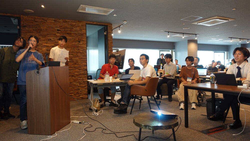 各プロジェクトのメンバーが簡単な自己紹介とプロジェクト内容について全員の前でプレゼンしました。